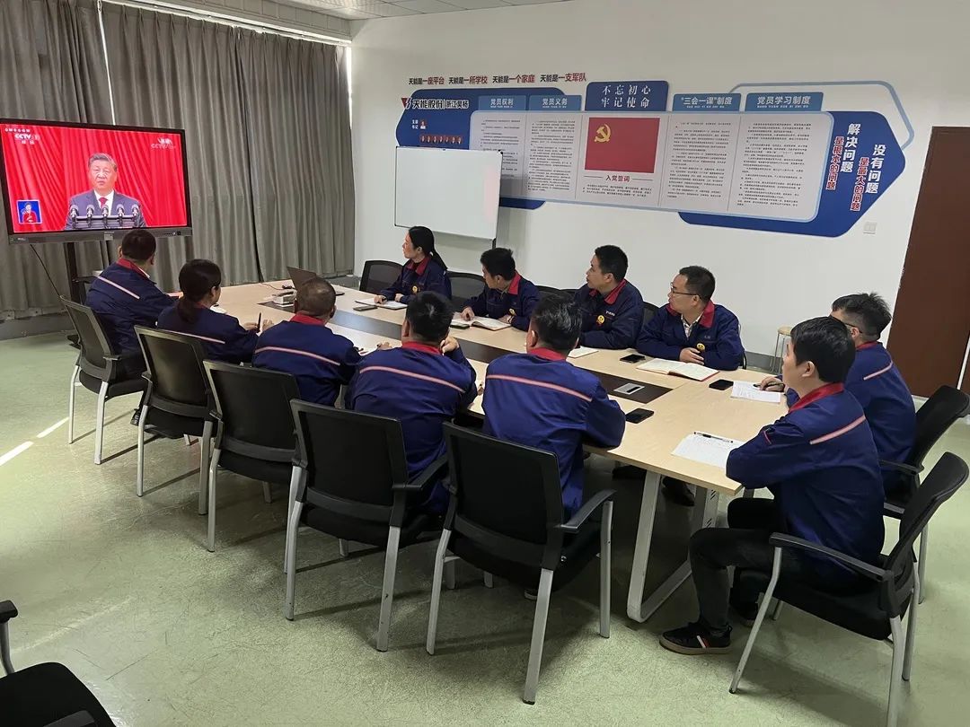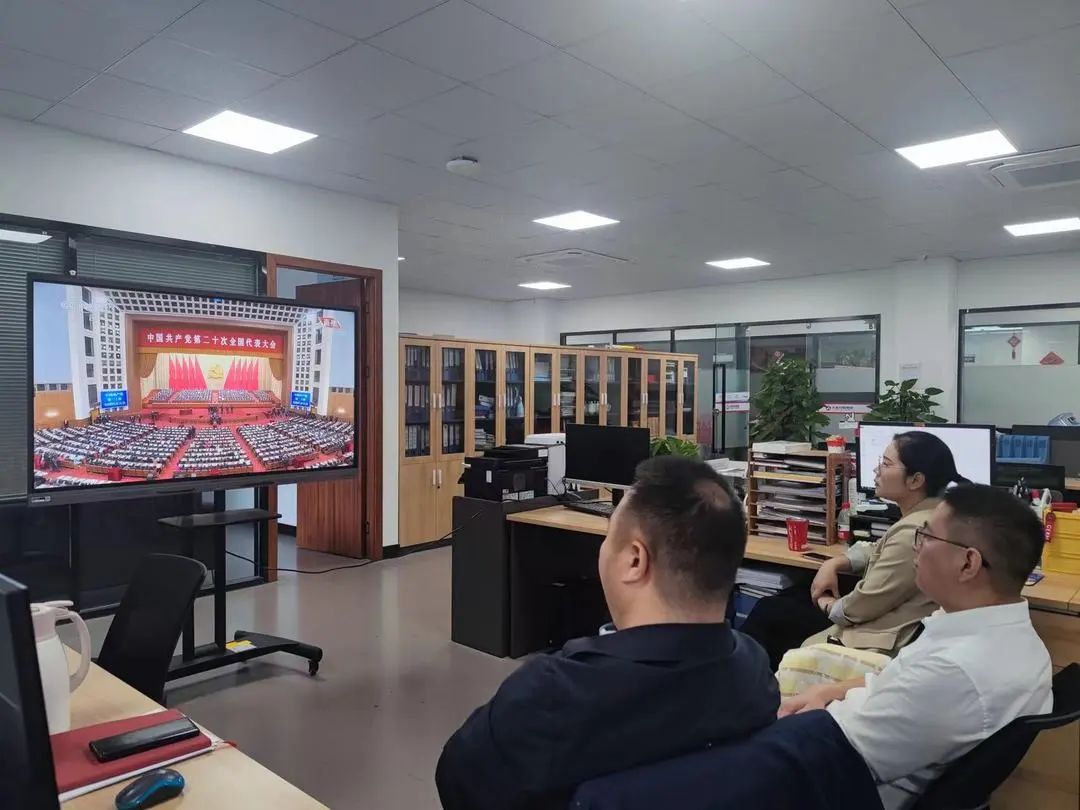 2022年10月16日上午10时,中国共产党第二十次全国代表大会在人民大会堂开幕。555000jcjc公海控股集团党委通过“线上+线下”的方式组织全体党员第一时间收听收看党的二十大开幕会盛况,学习习总书记重要讲话精神。